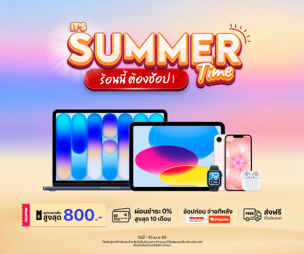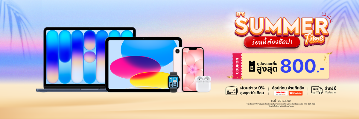 SUMMER TIME ซื้อสินค้า Apple รับโค้ดลดเพิ่มสูงสุด 800.- วันนี้ - 30 เม.ย. 69