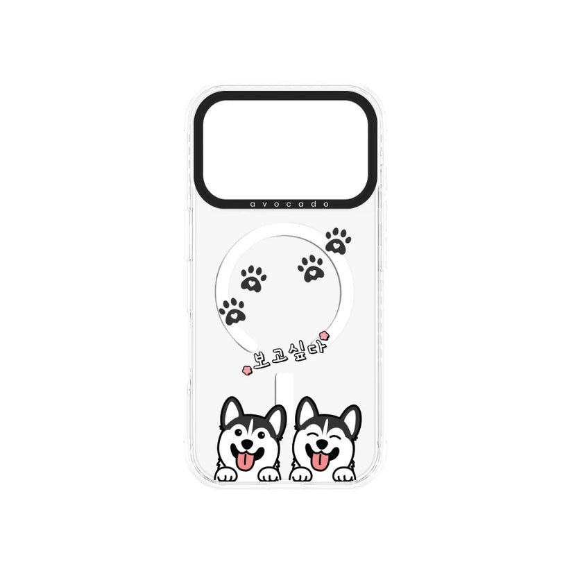 • เคสใสลายน้องหมาคู่ พร้อมข้อความเกาหลี 보고싶다 (โบโกชิปตา = คิดถึง/อยากเจอ)