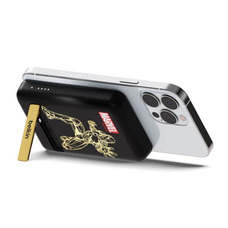 แบตเตอรี่สำรอง Belkin Magnetic Qi 7.5W Wireless Charging Power Bank 5,000 mAh With Kickstand Ironman