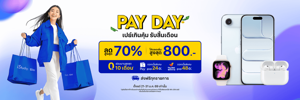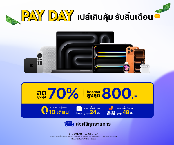 PAY DAY ซื้อสินค้า Apple รับโค้ดลดเพิ่มสูงสุด 800.- วันนี้ - 31 ม.ค. 69