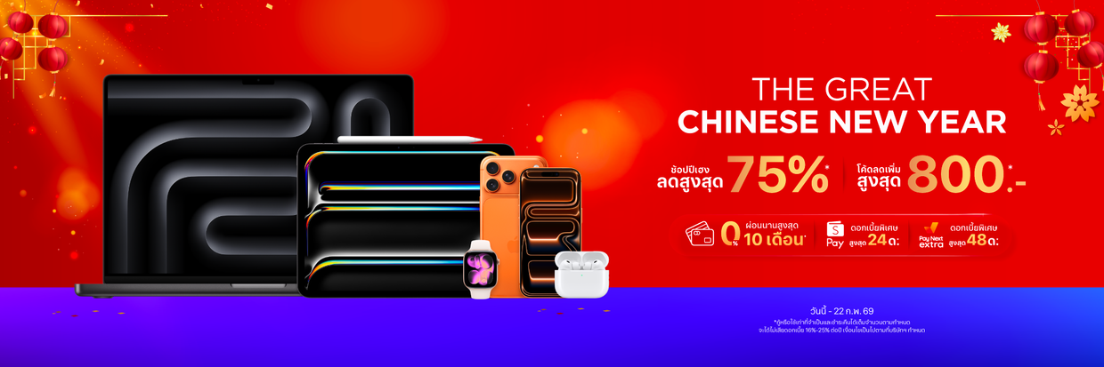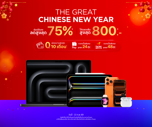 ช้อปปีเฮง ซื้อสินค้า Apple ลดสูงสุด 75% วันนี้ - 22 ก.พ. 69
