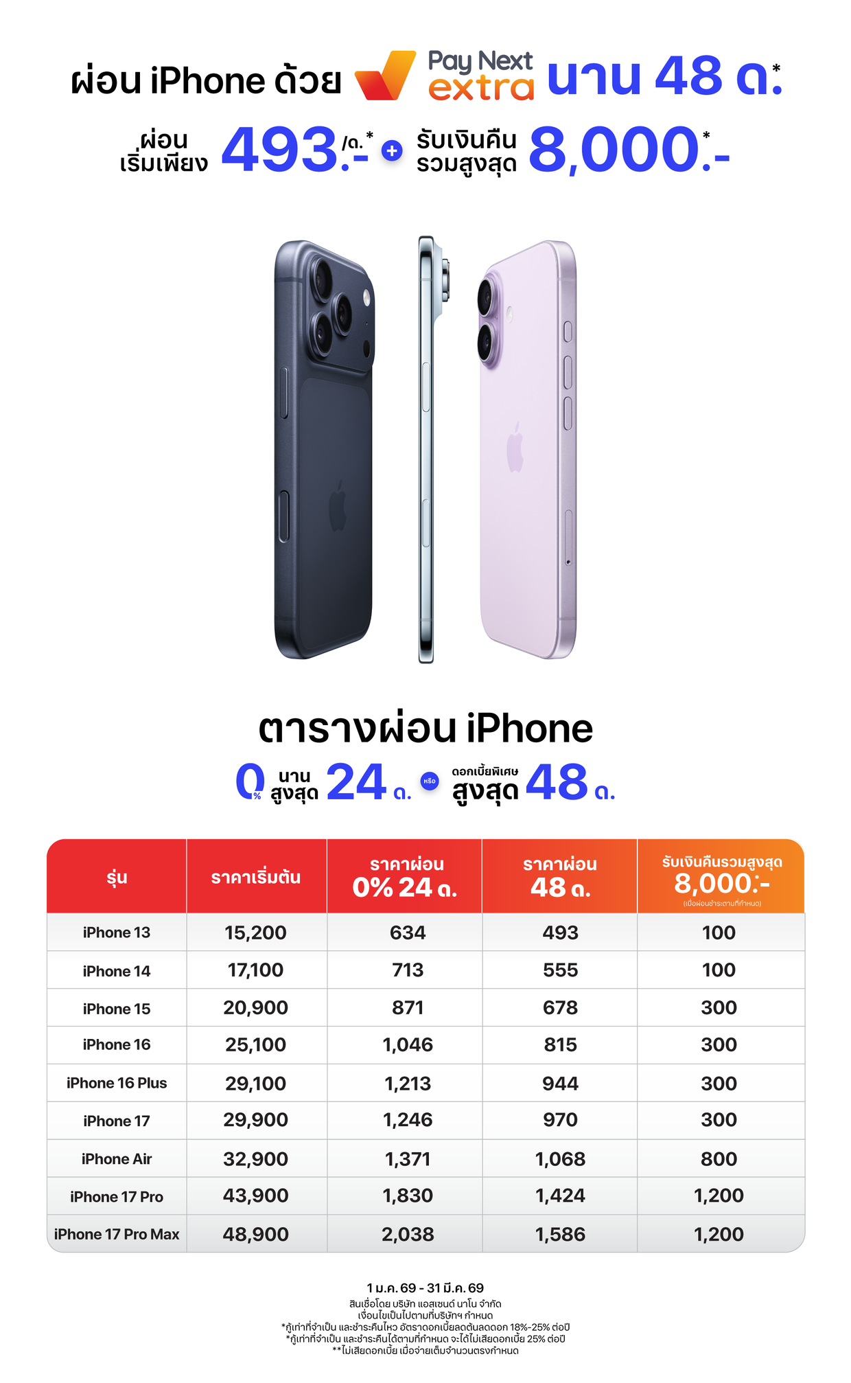 ผ่อน iPhone 17 และ iPhone Air ไม่ใช้บัตรเครดิตได้นานสูงสุด 48 เดือน