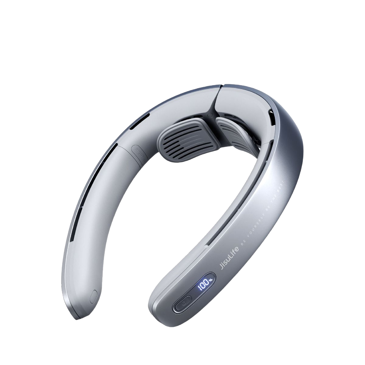 JisuLife Neck Fan Pro1 พัดลมคล้องคอแบบไร้ใบพัด มาพร้อมส่วนรองรับคอ และดีไซน์ที่สวยงาม ทันสมัย พกพาง่ายด้วยน้ำหนักที่เบาเพียง 322 กรัม ให้แรงลมที่นุ่มนวล เป็นธรรมชาติ ช่องลม 4 ทิศทาง ช่วยกระจายลมไปยังพื้นที่ต่างๆ และทำให้อากาศไหลเวียนได้รอบทิศทาง 360 องศา ให้คุณสัมผัสความเย็นได้อย่างทั่วถึงมาพร้อมหน้าจอดิจิทัล LED แสดงระดับแบตเตอรี่และความแรงลม สามารถปรับความแรงลมได้ 100 ระดับด้วยการเลื่อนขึ้น-ลง ส่วนรองรับคอทำจากซิลิโคนเนื้อนิ่ม ช่วยให้ใส่ได้นาน ไม่เหนียวเหนอะหนะ สามารถปรับความกว้างได้ ช่วยให้สวมใส่ง่ายและกระชับมากยิ่งขึ้น