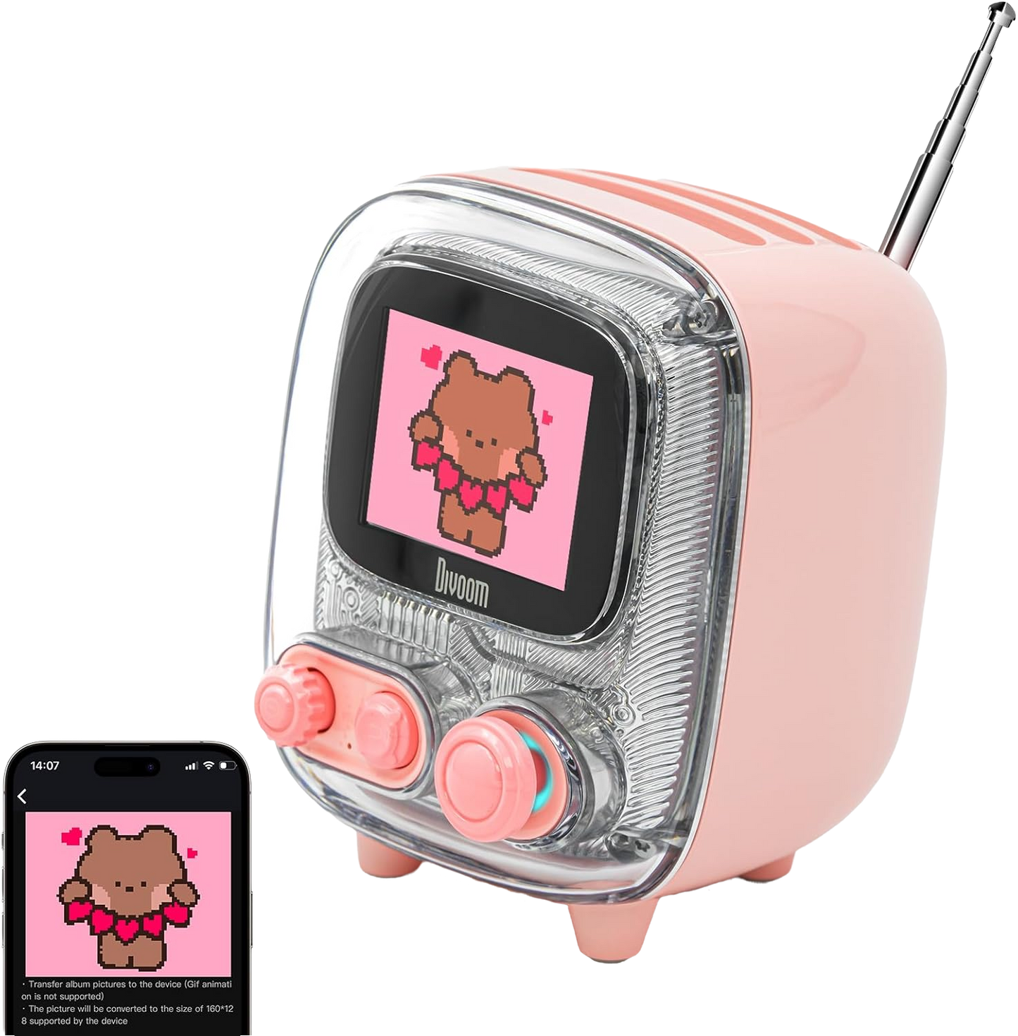 ใช้แอป Divoom เพื่ออัปโหลดรูปภาพเพื่อฉายภาพไปยังหน้าจอลำโพงและสร้างอัลบั้มรูปสุดพิเศษ ซึ่งจะทำให้มองเห็นคนที่คุณคิดถึงและช่วงเวลาที่น่าจดจำได้ ปรับหน้าปัดนาฬิกาได้มากกว่า 80 แบบเลือกสไตล์ที่แตกต่างกันทำให้ทุกช่วงเวลาของทุกวันมีสไตล์มากขึ้น ชิปวิทยุเกรดรถยนต์และเสาอากาศแบบยึดภายนอกทำให้การค้นหามีความละเอียดอ่อนมากขึ้น ATS ค้นหา/จัดเก็บความถี่วิทยุโดยอัตโนมัติสูงสุด 100 ความถี่วิทยุ