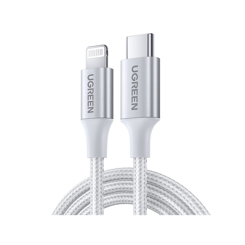 สายชาร์จ Ugreen USB-C to Lightning Cable Nylon 2M. Silver White (70525)