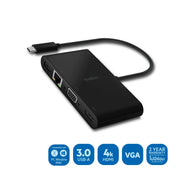 ฮับมัลติพอร์ต Belkin USB-C 4in1 To HDMI,VGA,Gigabit,USB-A 3.0 (AVC005btBK) 15 cm. Black