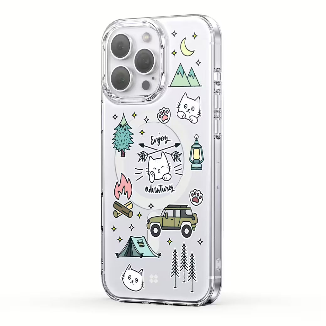 CaseStudi รุ่น Cast Collection เคสกราฟิกลายแมว ที่โชว์สีเครื่อง พร้อมดีไซน์ลวดลายที่มีสไตล์ ลายรูปแบบ IMD(In-Mold Decoration) ไม่หลุดลอก ซีดจาง หรือเป็นรอยเปื้อน ผ่านการทดสอบจาก SGS Drop Test ที่ความสูง 1.8 เมตร ด้วยการเสริมขอบมุมกันกระแทก เคสรองรับการชาร์จแบบไร้สาย และการใช้งานร่วมกับอุปกรณ์เสริม Magnetic