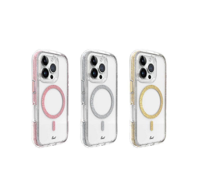 LAUT Aero Sparkle MagSafe Case สำหรับ iPhone 16 Series ผสมผสานความใสเพื่อโชว์สีสันของตัวเครื่องกับความสวยงามของกลิตเตอร์บริเวณขอบและ MagSafe มาพร้อมกับเทคโนโลยี IMPKT CELL ที่ช่วยเสริมความแข็งแรง ขอบเคสถูกออกแบบให้รับแรงกระแทกได้ดีและถือถนัดมือ แม้จะบางเบา แต่ยังคงทนทานรองรับการตกกระแทกจากระดับสูงถึง 6.4 เมตร และยังรองรับการชาร์จ MagSafe ทำให้คุณใช้งานได้อย่างสะดวกสบายทุกวัน