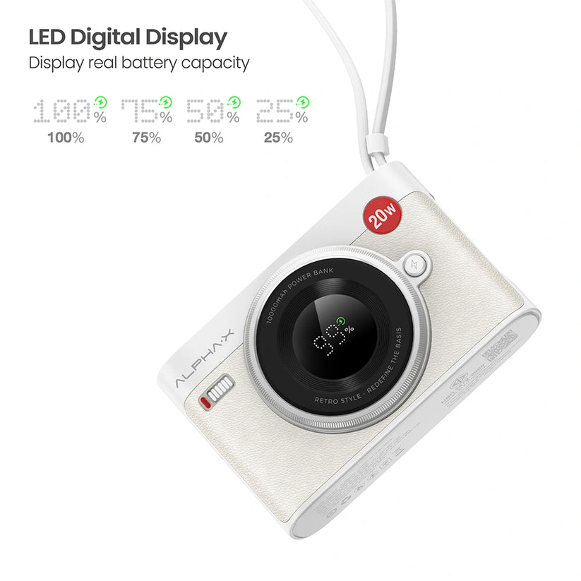 แบตเตอรี่สำรอง AlphaX Power Bank 2 in 1 Pd 20W 10,000 mAh White