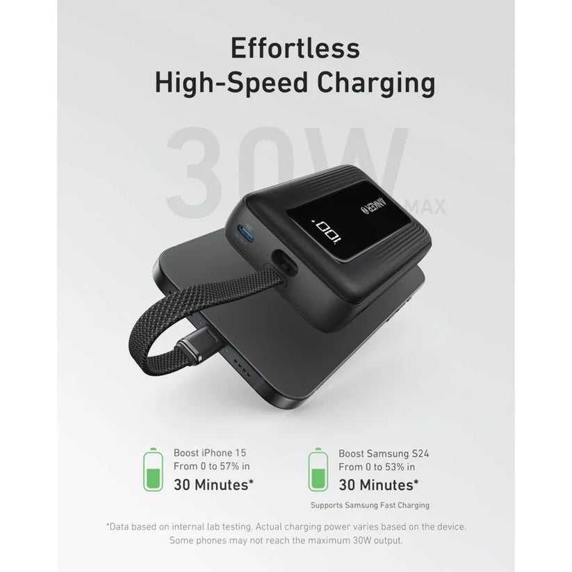 แบตเตอรี่สำรอง Anker Zolo Power Bank 10,000 mAh 30W Builtin Usbc Cable Black