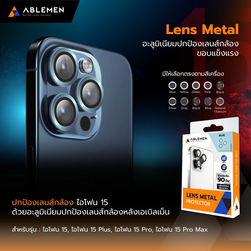 Ablemen Aluminum Lens สำหรับ iPhone นำเสนอความทนทานและดีไซน์ทันสมัยได้อย่างลงตัว ทำจากอลูมิเนียมคุณภาพสูงที่มีโครงสร้างแข็งแรง ความแข็งแรงระดับ 9H ป้องกันรอยขีดข่วนอย่างดีเยี่ยม การป้องกันการกระแทกที่ถึง 360 องศาให้ความปลอดภัยทุกรูปแบบ ถ่ายรูปได้อย่างคมชัดและสามารถใช้แฟลชได้โดยปกติ ขนาดที่พอดีกับเลนส์กล้องและขอบโค้งที่ไม่บาดมือ เสริมด้วยดีไซน์หรูหราที่เข้ากันไปกับกล้องอย่างลงตัว ประสบกับประสบการณ์ถ่ายภาพที่ดีที่สุดด้วย Ablemen Aluminum Lens ที่รวมความแข็งแรงและสไตล์อย่างลงตัวได้อย่างล้ำลึก